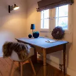 Het interieur bestaat uit een bank en een bureau, evenals een flatscreen TV met satellietzenders. Badkamervoorzieningen omvatten zowel een apart toilet, een badkuip en een douche, evenals een haardroger en handdoeken.